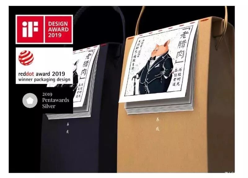 在中国,“老腊肉”这个词有两种意思。“猪大叔老腊肉”在包装设计中把这两个意思进行了关联,